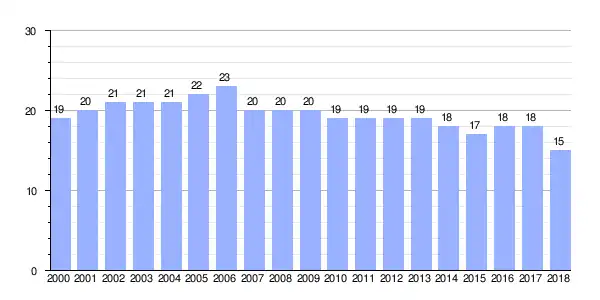 | Gráfica de evolución demográfica de Orto entre 2000 y 2018 |