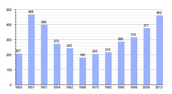 Los datos demográficos contemplados en este gráfico de la comuna de Orveau-Bellesauve[4] se han cogido de 1800 a 1999 de la página francesa EHESS/Cassini, y los demás datos de la página del INSEE.[5]