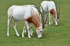 El órix de cuernos de cimitarra u órix blanco (Oryx dammah) es una especie de bóvido africano de la subfamilia Hippotraginae. Es la única especie de Oryx que posee cuernos curvos, lo que le da el nombre común. Su aspecto es usual en el género, pero sus cuernos se curvan hacia atrás en forma de cimitarra y su pelaje, aunque blanco, es de color rojizo en las patas y el cuello, mientras que la máscara facial es casi ausente.