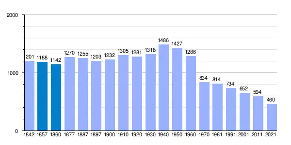 | Gráfica de evolución demográfica de Osa de la Vega[4] entre 1842 y 2021 |