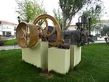 En la plaza mayor queda una pieza de maquinaria procedente de Mánchester que funcionaba en la fábrica de harinas.
