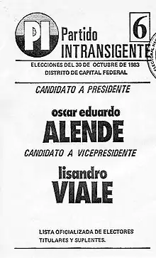 Unión Cívica Radical (1945-1957) Unión Cívica Radical Intransigente (1957-1972) Partido Intransigente (1972-1996) | |
