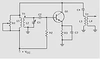 - En serie con R4 o sustituyéndolo, se coloca un choque de radio frecuencia (RFC). Consiste en una inductancia cuya función es la de atenuar al máximo las oscilaciones de corriente alterna, pero presentando un bajo valor óhmico a la corriente continua.