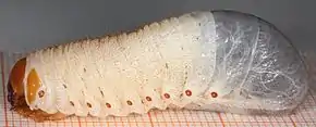 La larva vive en troncos huecos de árboles, preferentemente de robles.