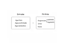 Los animales terrestres obtienen agua corporal de tres formas, bebiéndola directamente (agua libre), incorporándola junto con los alimentos (agua preformada) y produciendo agua metabólica mediante la oxidación de lípidos, carbohidratos y proteínas. Los vertebrados terrestres pierden agua a través de la excreción de orina y heces, por evaporación a través de las vías respiratorias y por difusión a través del tegumento. Alcanzan el equilibrio hídrico cuando la cantidad total de agua perdida es igual a la cantidad total obtenida.[14] El balance hídrico depende también de la humedad, la temperatura y el viento del entorno. En el balance hídrico de los animales endotermos, cuando el agua es utilizada en la regulación de la temperatura, la pérdida de agua por evaporación se convierte en el factor dominante.