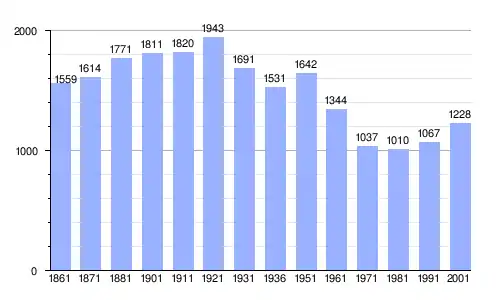 | Gráfica de evolución demográfica de Ossago Lodigiano entre 1861 y 2001 |