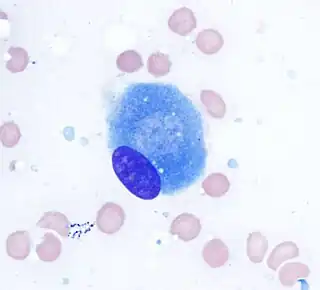 ![]() Imagen tomada con un microscopio óptico de un osteoblasto teñido con Giemsa. | ||