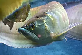 Las arowanas a veces se llaman pez dragón por los acuaristas por sus brillantes escamas como una armadura y barbillas son una reminiscencia de la descripción de los dragones en el folclore asiático.[cita requerida]