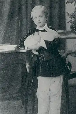 Durante sus últimos siete años de vida fue atendido por una institutriz inglesa, María Barnes. Su vida trascurrió junto a su familia, siendo el centro de la vida familiar, especialmente por su difícil estado de salud. A pesar de su corta edad, viajó junto con su familia a París en el verano de 1853; y a Suiza y el norte de Italia, en el otoño del año 1858, durante tres meses.