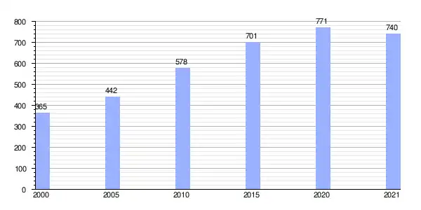 | Gráfica de evolución demográfica de Otero de Rey (villa) entre 2000 y 2021 |
