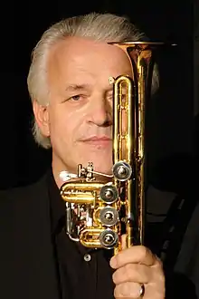En el 2008 presentó con la Filarmónica de Berlín el Concierto para trompeta piccolo y orquesta sinfónica que había escrito para él el compositor griego Mikis Theodorakis y había arreglado el húngaro Róbert Gulya. Se ejecutó en las salas filarmónicas de Berlín y Colonia, dirigido por Gert Hof.