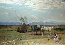 Pintó principalmente paisajes, que a menudo animaba con animales y personas. Los temas frecuentes son los caballos y el ganado en primer plano, un granjero que ara, el pastor con su rebaño, los alrededores de Dachau, el curso del Isar desde Múnich hasta Benediktenwand. Repitió algunas obras varias veces en el estudio.