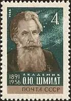 Estampilla soviética dedicada a Otto Schmidt.