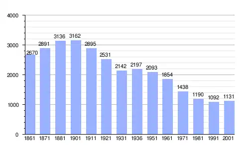 | Gráfica de evolución demográfica de Ottobiano entre 1861 y 2001 |