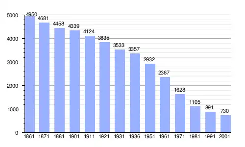 | Gráfica de evolución demográfica de Ottone entre 1861 y 2001 |