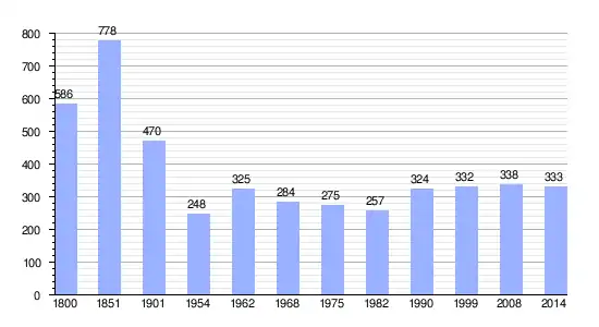 | Gráfica de evolución demográfica de Ourouër entre 1800 y 2014 |