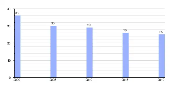 | Gráfica de evolución demográfica de Ousón entre 2000 y 2019 |