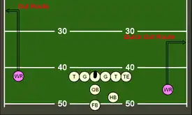 Esta ruta es usada con mucha frecuencia cerca del final de cada mitad del juego, cuando cada equipo está corriendo lo que se conoce como Two-minute drill para ahorrar tiempo en el reloj de juego, porque en cuanto el receptor atrapa el balón o después de hacer una corta carrera con el balón en su poder, puede salirse del campo de juego, parando el reloj. Las rutas "hacia adentro""y ""hacia afuera" son las más difíciles de cubrir en una cobertura hombre a hombre, pero pueden ser jugadas peligrosas para utilizar si el jugador defensivo intercepta el balón ya que puede encontrar un camino libre hacia la zona de anotación.