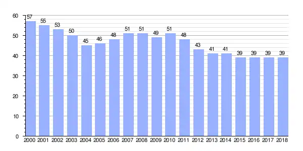 | Gráfica de evolución demográfica de Outeiro entre 2000 y 2018 |