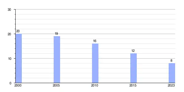 Gráfica de evolución demográfica de Outeiro entre 2000 y 2023