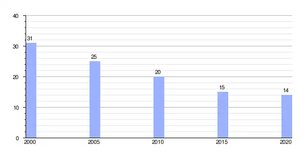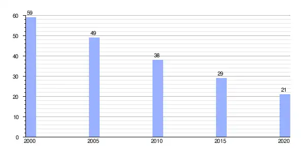 | Gráfica de evolución demográfica de Outeiro (aldea) entre 2000 y 2020 |