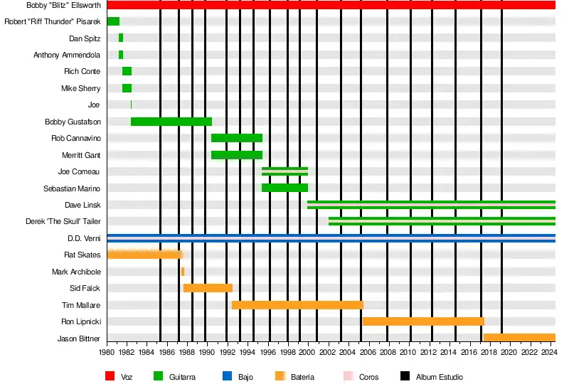 - Bobby "Blitz" Ellsworth – voz (1980–presente)