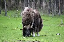 El buey almizclero o buey almizclado (Ovibos moschatus), (en inuktitut: ᐅᒥᖕᒪᒃ "umingmak") también llamado de forma más frecuente toro almizclero, es una especie de mamífero artiodáctilo de la familia Bovidae.[2] A pesar de su fuerte parecido externo con los bovinos (es un caso de convergencia evolutiva), los bueyes almizcleros pertenecen a la subfamilia Caprinae, la misma en la que se incluyen las cabras y ovejas. Esta curiosa naturaleza se manifiesta en el nombre científico del género, Ovibos, formado por composición a partir de las palabras latinas «ovis» («oveja») y «bos»buey»). El apelativo almizclero proviene de una serie de glándulas secretoras que presentan los machos y funcionan durante la época de celo.