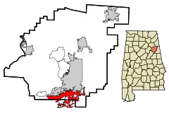 Ubicación en los condados de Calhoun y Talladega en el estado de Alabama