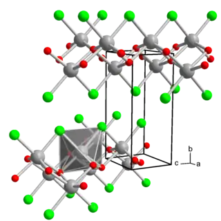 El oxicloruro de hierro es un compuesto inorgánico de fórmula FeOCl. Este sólido púrpura adopta una estructura en capas, parecida a la del cloruro de cadmio.[2] El material se hidroliza lentamente en aire húmedo. El sólido intercala donantes de electrones como el tetratiafulvaleno e incluso la piridina para dar lugar a sales de transferencia de carga de valencia mixta. La intercalación va acompañada de un notable aumento de la conductividad eléctrica y un cambio de color a negro.[3]