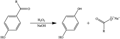 - Matsumoto, M.; Kobayashi, K.; Hotta, Y. (1984). «Acid-catalyzed oxidation of benzaldehydes to phenols by hydrogen peroxide». The Journal of Organic Chemistry 49 (24): 4740. doi:10.1021/jo00198a037.