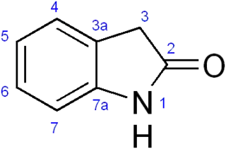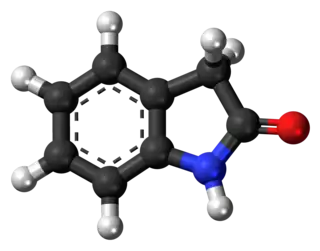 El oxindol ( 2-indolona ) es un compuesto orgánico heterocíclico aromático . Tiene una estructura bicíclica, que consta de un anillo de benceno de seis miembros fusionado a un anillo que contiene nitrógeno de cinco miembros . El oxindol es una indolina modificada con un carbonilo sustituido en la segunda posición del anillo de indolina de 5 miembros.[2]
