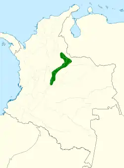 Es nativo de los páramos de la Cordillera Oriental de los Andes de Colombia. El barbudito paramuno habita Cundinamarca y Boyacá, donde se describe como localmente, común en el páramo alto cubierto de musgo y con abundantes frailejones del género Espeletia. En la época de lluvia permanece entre los frailejones aprovechando la floración, tanto por el néctar como por larvas de pequeños insectos que se alojan entre las flores; mientras que durante la estación seca desciende hasta el subpáramo y bosques altoandinos, donde aprovecha flores de otras especies, como Brachyotum strigosum.[5][8]