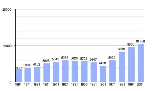 | Gráfica de evolución demográfica de Ozzano dell'Emilia entre 1861 y 2001 |