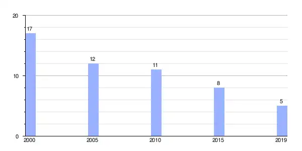 | Gráfica de evolución demográfica de Pántaras entre 2000 y 2019 |