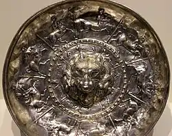 - Iconografía: Escena de caza, lobo, centauro.