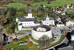 Se encuentra ubicada al oeste del estado, a poca distancia de la orilla del río Danubio, al oeste de Viena y al este de la frontera con el estado de Alta Austria.[2]