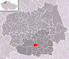 Se encuentra ubicada al este de la región, cerca de la orilla de los ríos Elba y Ohře, y de las regiones de Liberec y Bohemia Central.[1]