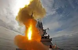 Disparo del destructor HMS Defender (2019).