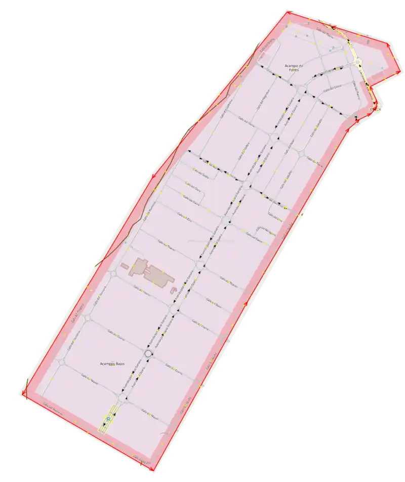 Tiene un eje central de 4800 m de largo y 120 m de ancho formado por la avenida José López Soriano y la avenida del Ozono.