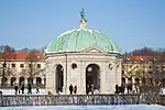 Pabellón frente a la catedral de Gniezno, Polonia.