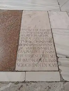 - «Pablo de Céspedes, racionero de esta santa iglesia, peritísimo en la pintura, escultura, arquitectura y todas las bellas artes, y en varios idiomas yace aquí. Murió el año del señor 1608, el veintiséis de julio».