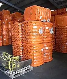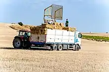 Las empacadoras forman paquetes regulares de paja que atan mediante el uso de cuerda de sisal o plástico. Las pacas suelen quedar dispersas en el campo y son recogidas posteriormente por medios manuales, manuales con asistencia mecánica o por medios completamente mecánicos. Para facilitar esta labor algunas empacadoras llevan adosado un remolque que recoge temporalmente las pacas para luego depositarlas de forma regular en el campo facilitando la posterior recogida.