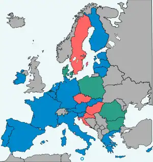 - Obligación de reducir el déficit público por debajo del 3%, lo cual es fundamental para conseguir que los países de la Unión Europea cuenten con unas finanzas públicas saneadas y no se vean envueltos en una posible suspensión de pagos, como la Crisis de Deuda Soberana de Grecia de 2011.[5]