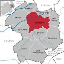 ![]() Paderborn Localización de Paderborn en Renania del Norte-Westfalia | ||||