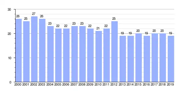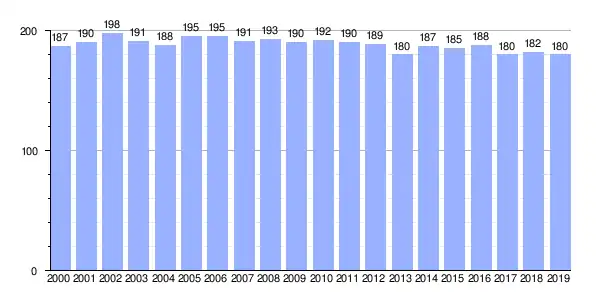| Gráfica de evolución demográfica de Paderne (lugar) entre 2000 y 2019 |