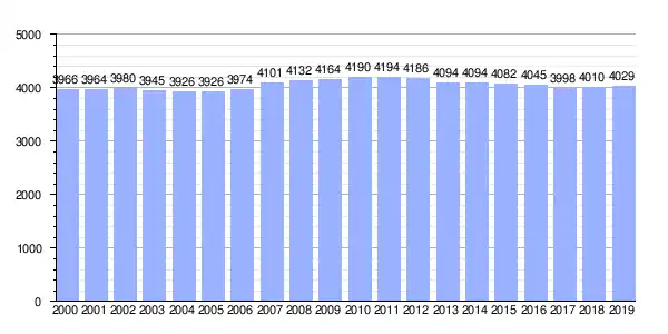 | Gráfica de evolución demográfica de Padrón (parroquia) entre 2000 y 2019 |