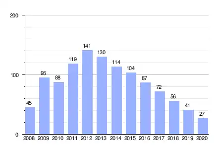 | Gráfica de evolución de Deuda viva del Ayuntamiento de Padules entre 2008 y 2020 |