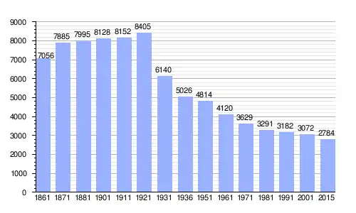 | Gráfica de evolución demográfica de Paesana entre 1861 y 2015 |