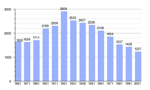 | Gráfica de evolución demográfica de Pagliara entre 1861 y 2001 |