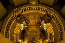 El Palacio Barolo (también llamado Pasaje Barolo o Galería Barolo) es un edificio de oficinas ubicado sobre la Avenida de Mayo, en el barrio de Monserrat, en Buenos Aires, Argentina. Fue diseñado por el italiano Mario Palanti e inaugurado en 1923.[1][2] Hasta los años 1930 fue el más alto de la ciudad y segundo de América del Sur ya que su hermano 'gemelo' el Palacio Salvo, midiendo 105 metros era el primero, construido por el mismo arquitecto en Montevideo. En 1997 fue declarado Monumento Histórico Nacional.[3] Incluye numerosas analogías y referencias a la Divina comedia, del poeta Dante Alighieri.[2] Fue pionero en el uso de hormigón armado dentro de un peculiar estilo ecléctico. En la cúspide posee un faro con 300 000 bujías. Tiene 100 metros de altura, ocupa una superficie de 1365 metros cuadrados y su frente es de 30,88 metros.[2]
